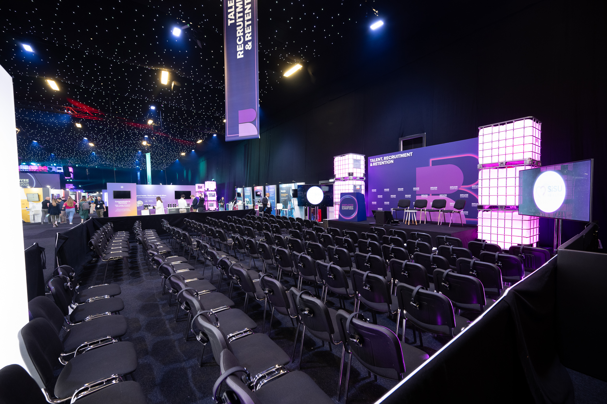 Encore provided complete technical and set production for the main stage and breakout spaces, excluding exhibition stands and certain branding elements. Despite a one-day setup window, the team executed a precisely managed installation to ensure readiness for more than 2,500 attendees.