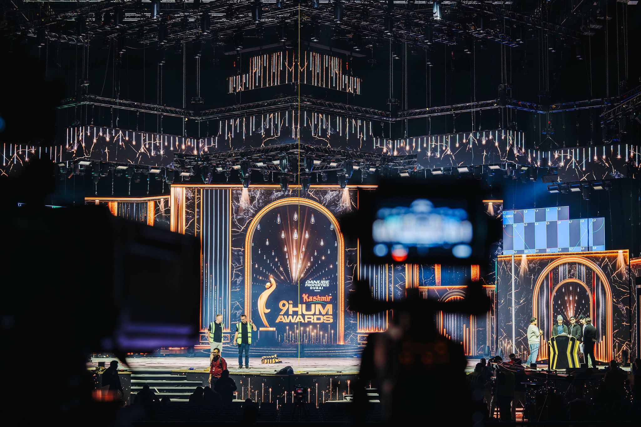 These specifications included staging, custom carpentry, LED screens, video control, cameras, sound, lighting, and, of course, exemplary production management throughout the live event. All design ideas came from the brilliant minds at HUM TV, and they relied on Encore to manage seamless technical delivery that would transform their ideas into reality. The scale of the event was not to be underestimated – from both a cultural and a technical perspective. Encore put their best team to work to ensure this was the most spectacular Hum Awards yet.