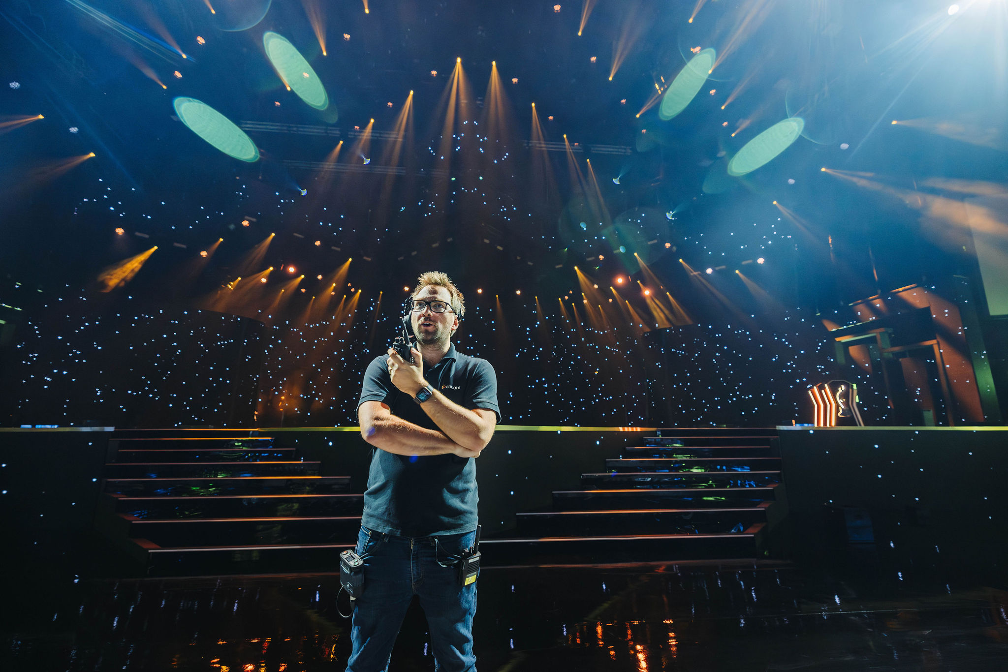 Once inside Wembley, the team stuck to a tight rigging schedule, which required 90% of the build to be completed in 18 hours. The custom rigging solution featured building a full-size stage, suitable for hundreds of performers and the all-important awards, as well as a combination of flown and ground-stacked LED displays, set at varying angles.