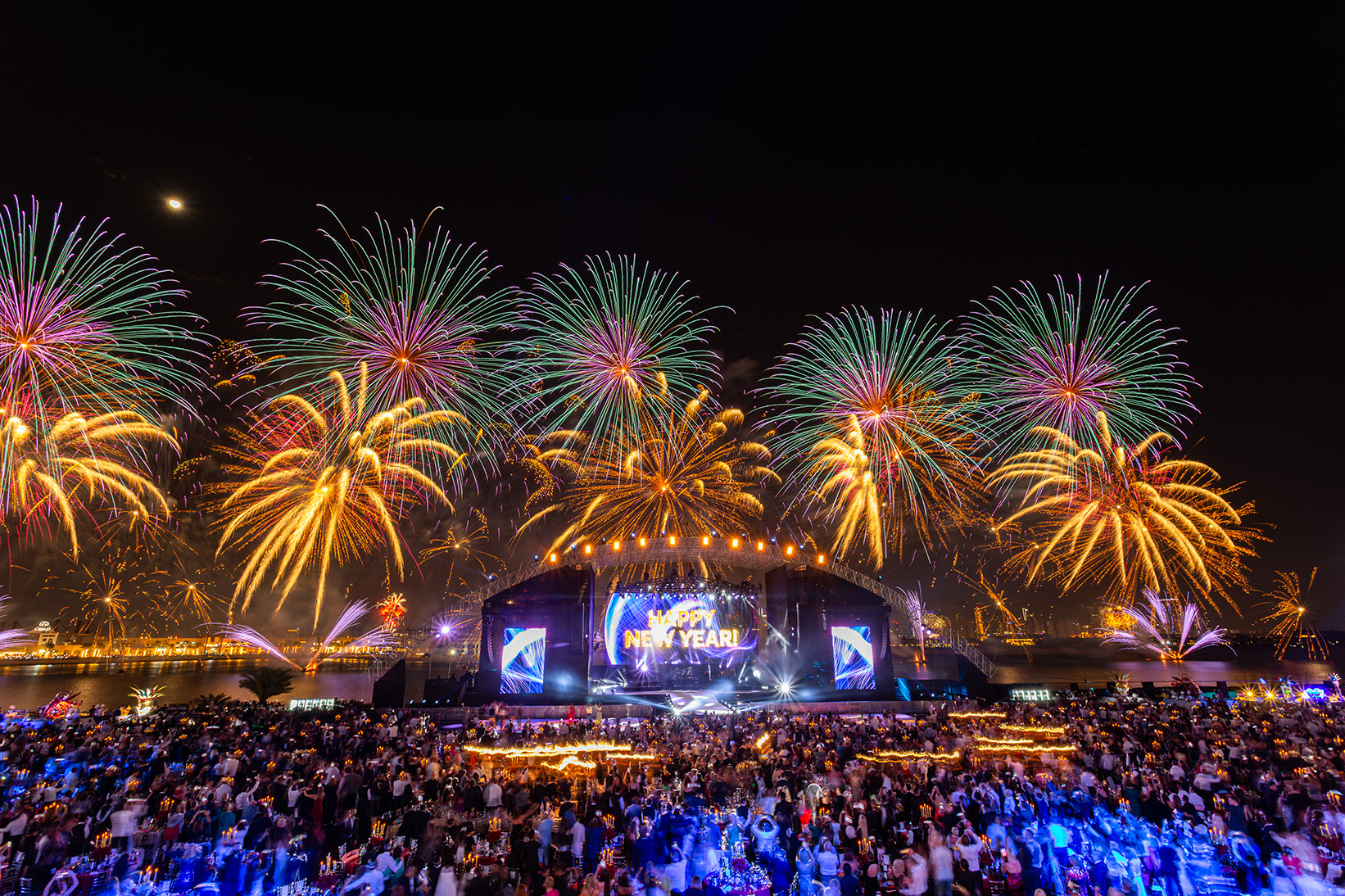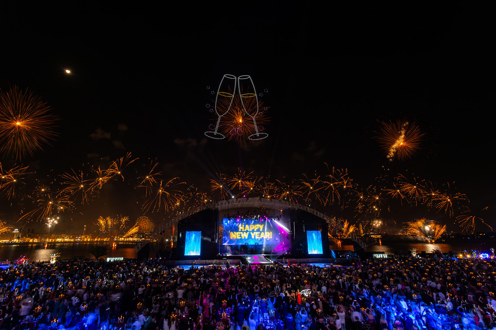 To provide maximum visibility for attendees, we pitched an enhanced stage design to provide an unforgettable experience for all attendees. The spectacular drone show and fireworks took centre stage, captivating the audience. To enhance viewing for guests in front of the stage area, we utilised a semitransparent LED screen. This allowed the audience to witness the magic of the show while maintaining a clear view of the performers.