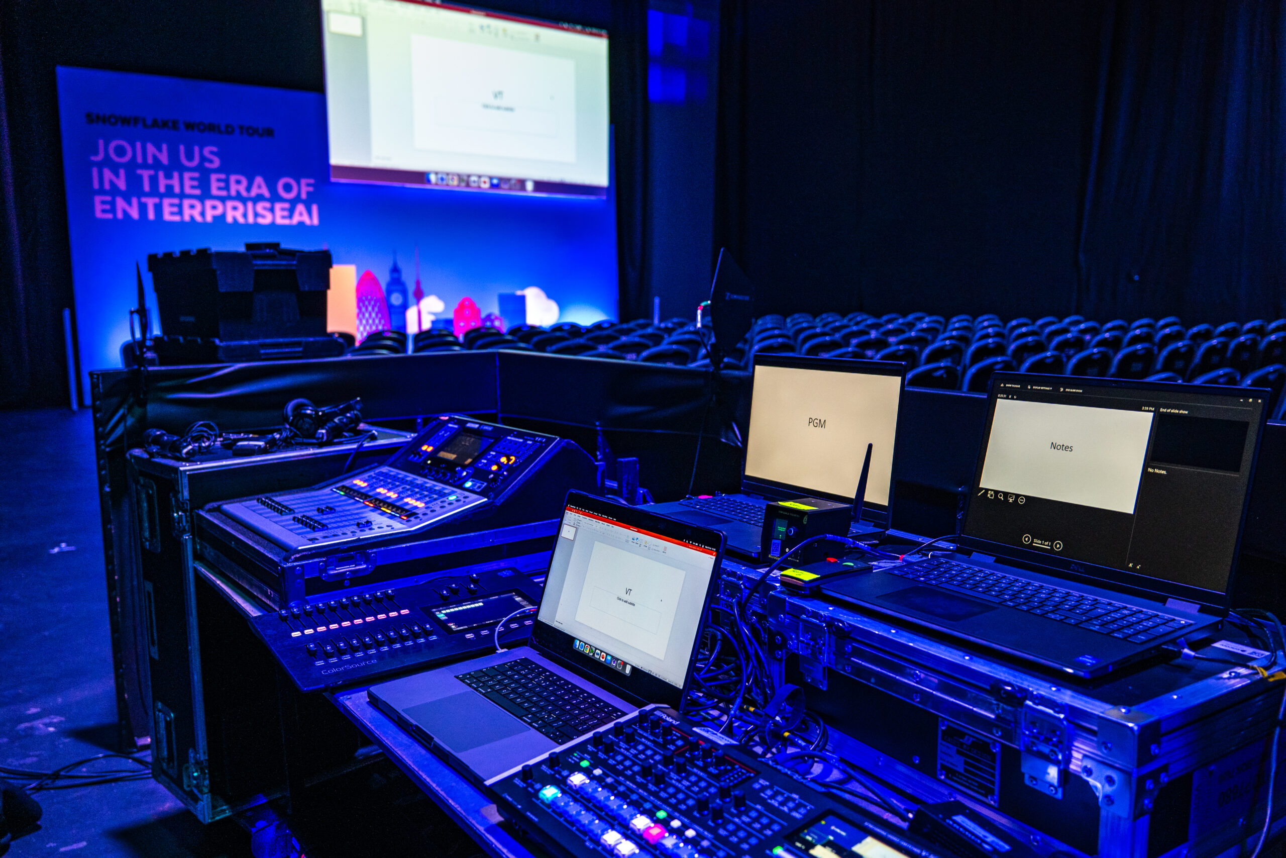 In our third consecutive year as production providers for this incredible event, Encore have worked hard to set high expectations for quality and innovation on the Snowflake Tour. Taylor Bennett Partners tasked the team with delivering a seamless and elevated experience across all aspects of the event. The requirements included technical production for eight breakout sessions, a central expo area, and unique installations to engage attendees and showcase Snowflake’s brand leadership.
