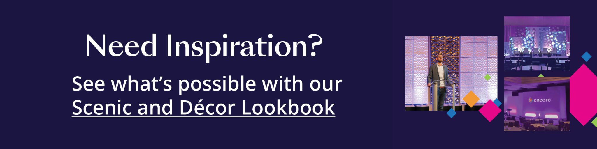 Explore the Scenic & Decor Lookbook for inspiration and options. Do you need custom scenic and fabrication? Check out Hargrove from Encore for ideas. We can tailor a solution to suit your budget and vision.
