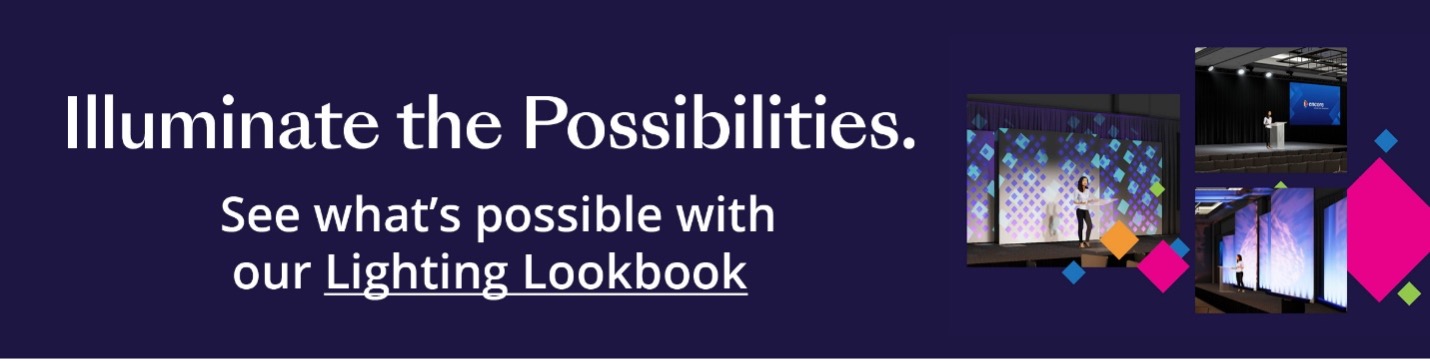 Tell us your meeting and event goals, and we can work with you on a personalized lighting solution that fits your budget and can scale to fit any size or type of event. Envision what’s possible with our Lighting Lookbook.